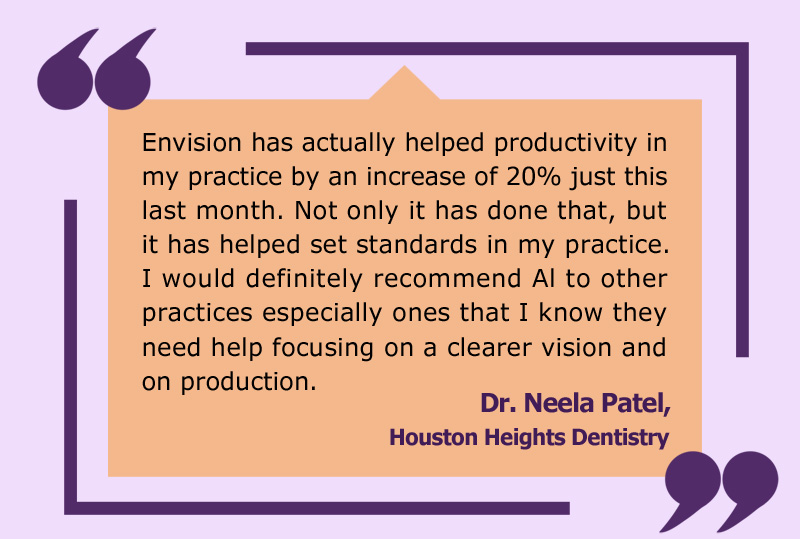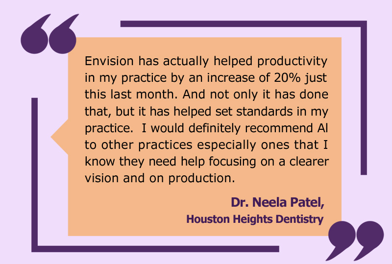 In my Practice, we saw a 20% growth in our production after the first 90 days of working with Envision and that’s why I’m going to continue. The most important thing about working with Envision – and Al in particular – is his expertise, caring attribute and true sincerity.”